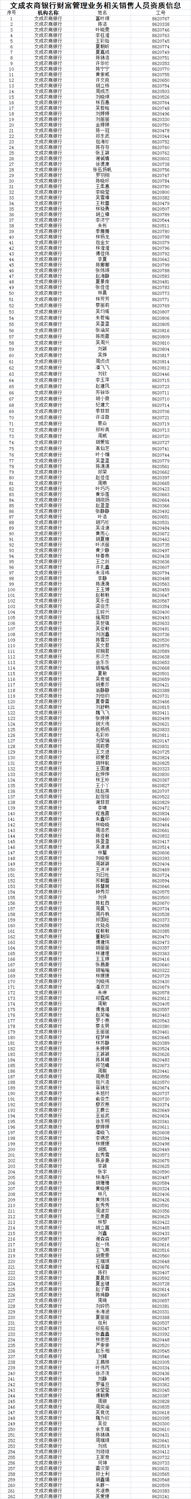 文成农商银行财富管理业务相关销售人员资质信息